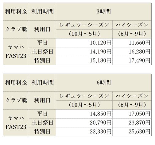 クラブ艇「ヤマハFAST23」が皆様のさまざまなニーズにお応えいたします!!